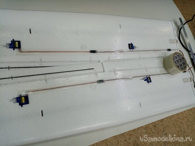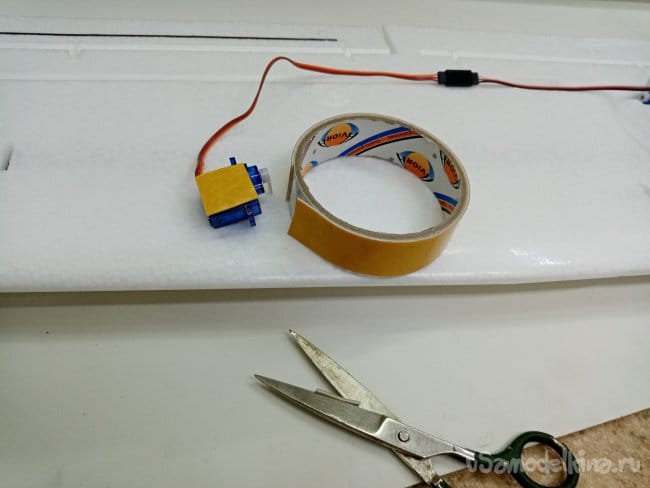 Сервоприводы фиксирую на двойной сверхпрочный скотч.