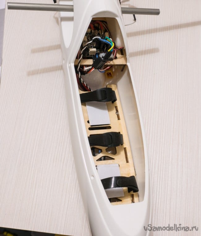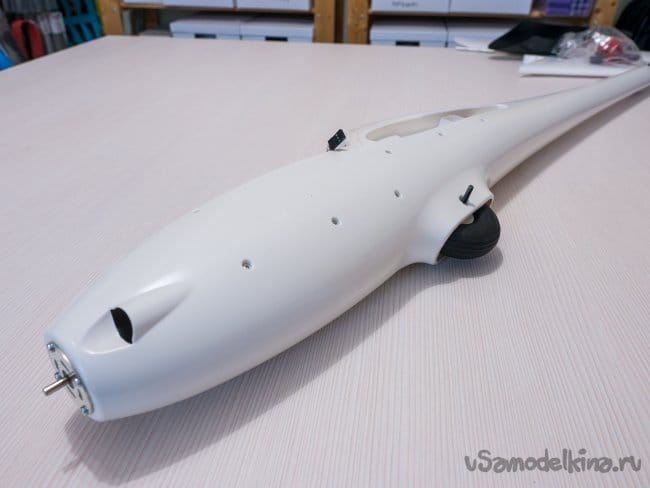 Фюзеляж с колесиком, и сервоприводы на руль направления и руль высоты установлены в хвостовой части. Нормальное решение. Не нужно проволоку тянуть в хвостик и при нагрузке она все равно прогибается не смотря на боудены.