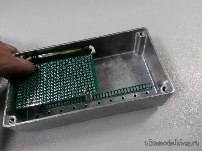 Всю схему я решил собрать в корпусе, который приобрёл в магазине "Чип и Дип". Прикинул как буду всё размещать.