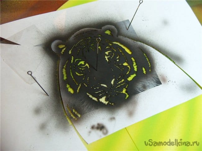 Повторенная многокрасочная окраска. Трафареты из толстого ватмана.