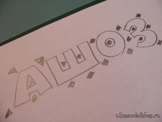 Переношу все буковки и наклеиваю полоски скотча на модель.