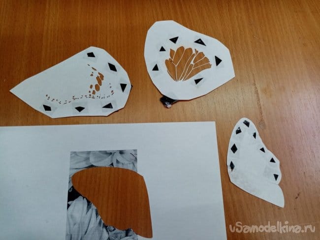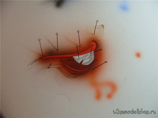 Некоторые элементы приклеиваю на малярный скотч, чтобы не улетели под струей воздуха.