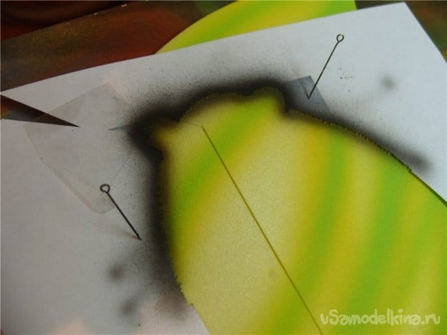 От раскраски телефонов и мышек остался разметочный трафарет из бумаги. Использовал его на самолетике.