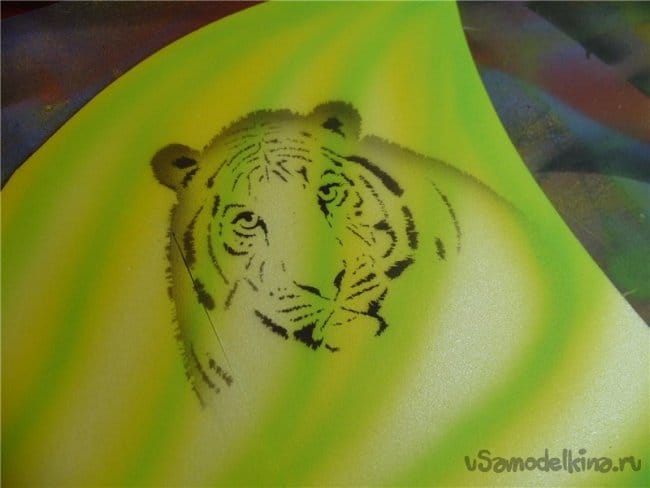 Как вариант использования одного трафарета с оттенком цвета по краям.