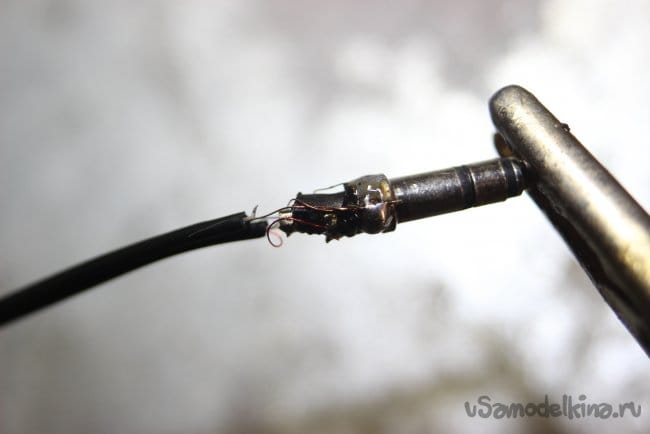 Было решено отрезать штекер и неработающую часть провода и снова их запаять.