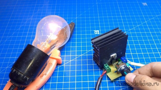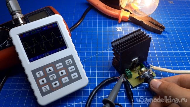 Данный диммер отрезает часть синусоиды и чем больше эта часть отрезана, тем больше у нас ограничена мощность. Можете наглядно посмотреть на фото с осциллографом.