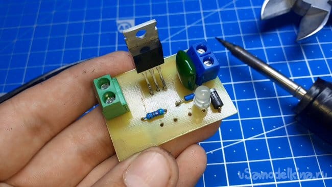 На симистор нам надо прикрутить радиатор он хоть и не очень сильно будет греться но всё же. Не забывайте намазать термопасту тонким слоем для лучшего контакта с радиатором. Для удобного подключения я использовал клеммные колодки но всё же лучше припаять напрямую к плате провода. Также не забывайте на резистор переменный надеть ручку пластиковую или хотя бы обмотайте изолентой, а то может ударить током