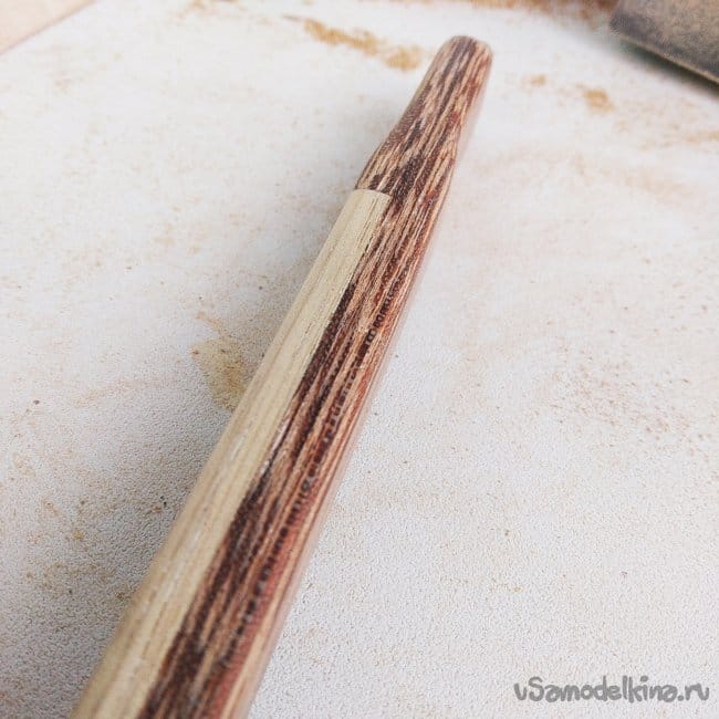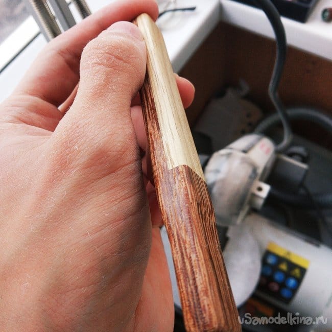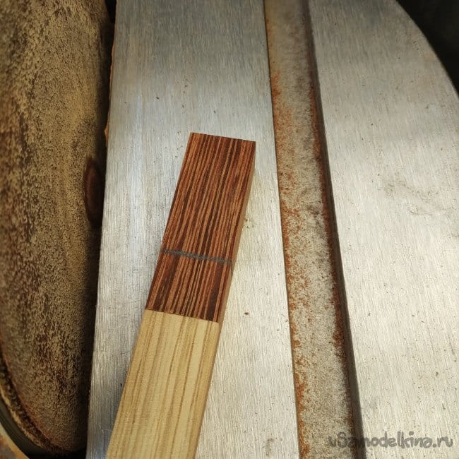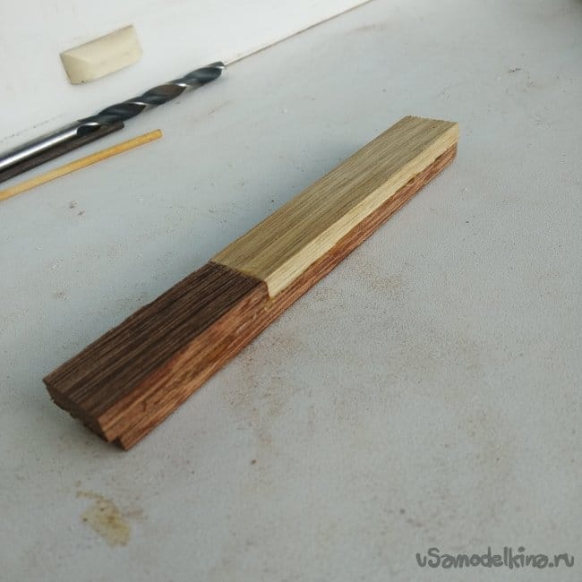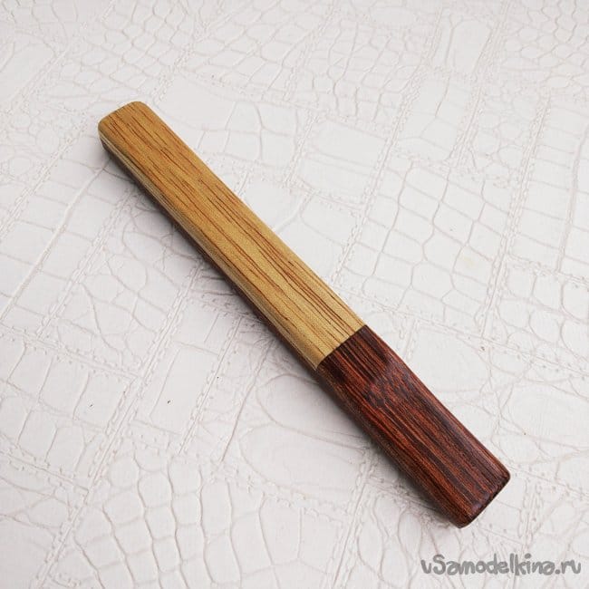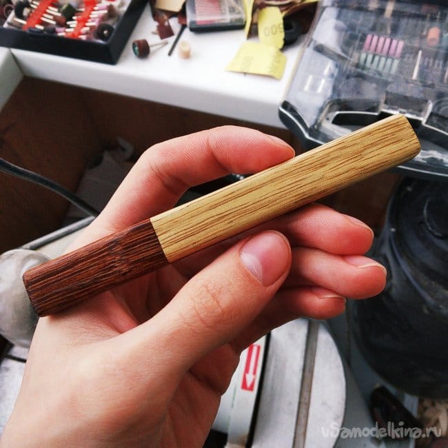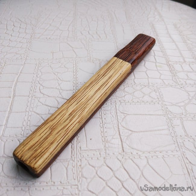 В общем, спустя некоторое время, дощечки склеились, и готова заготовочка для мундштука, которую нужно обточить.