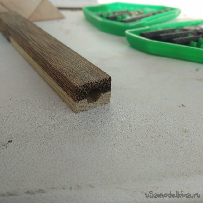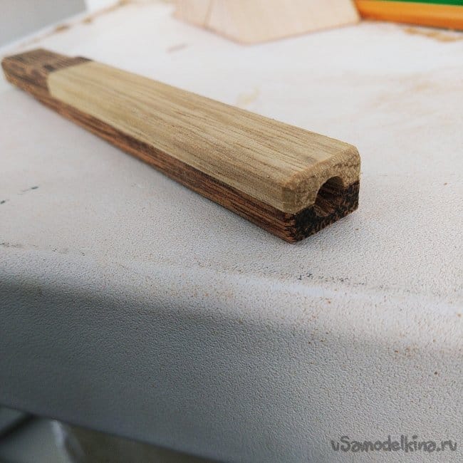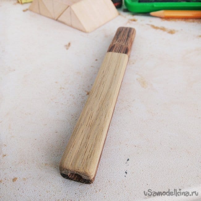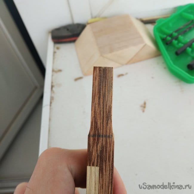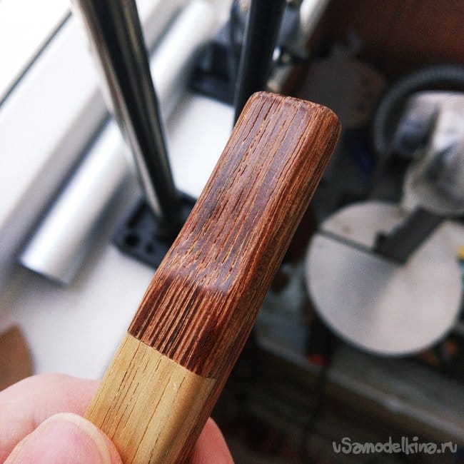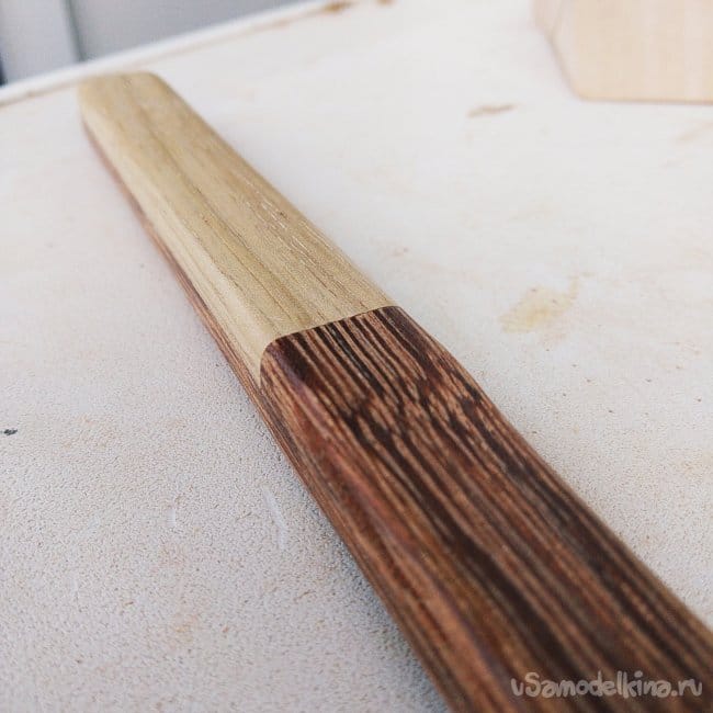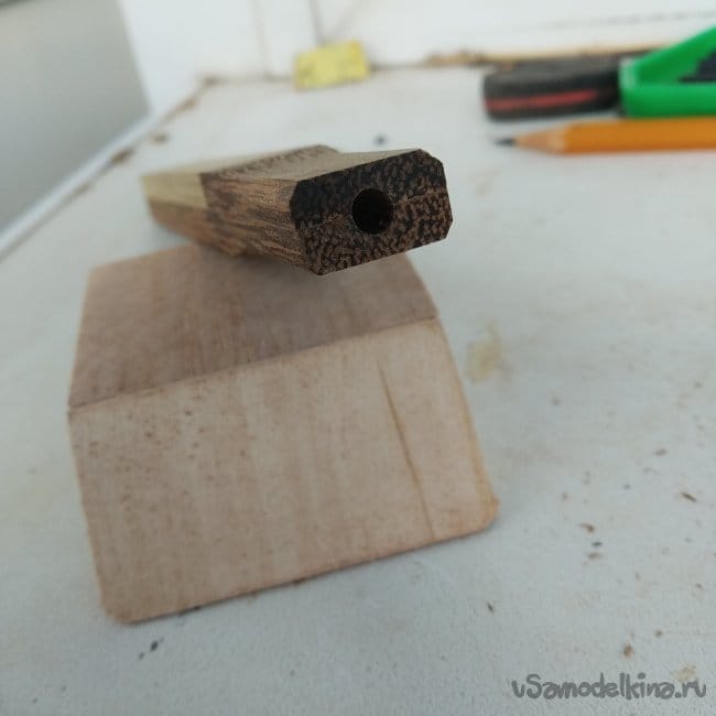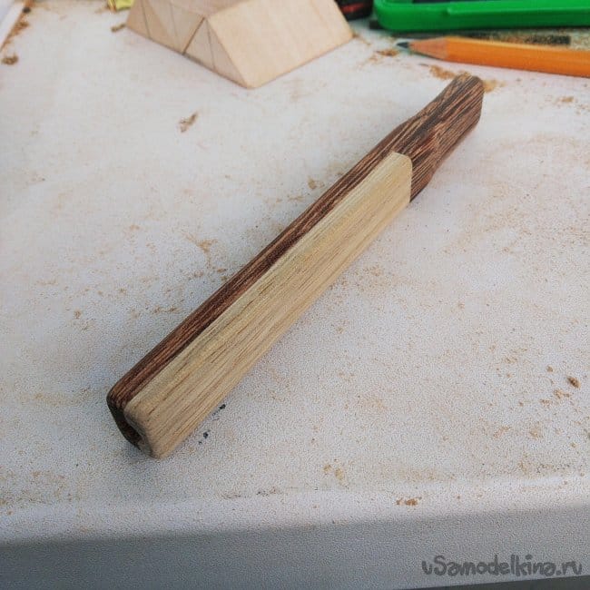 В общем, спустя некоторое время, дощечки склеились, и готова заготовочка для мундштука, которую нужно обточить.
