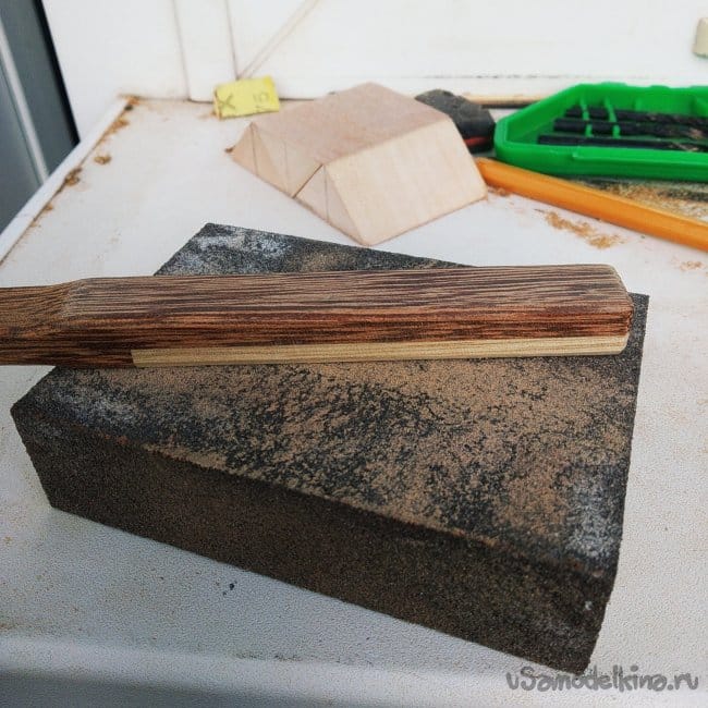 Сначала я скруглил углы на наждачном блоке 80 зернистости, что было немного затруднительно, но все же сукупира хоть как-то шлифуется более-менее. Какой-нибудь граб или ятобу шлифовать – это, конечно, подвиг.