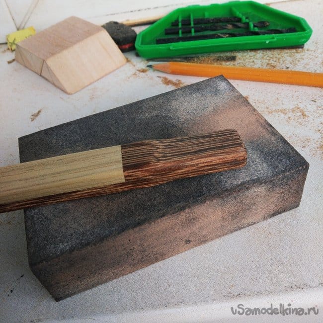 Теперь нужно деревяшки склеить, но для этого надо их сначала зашлифовать.