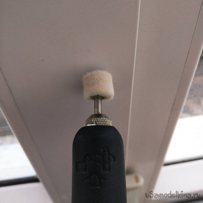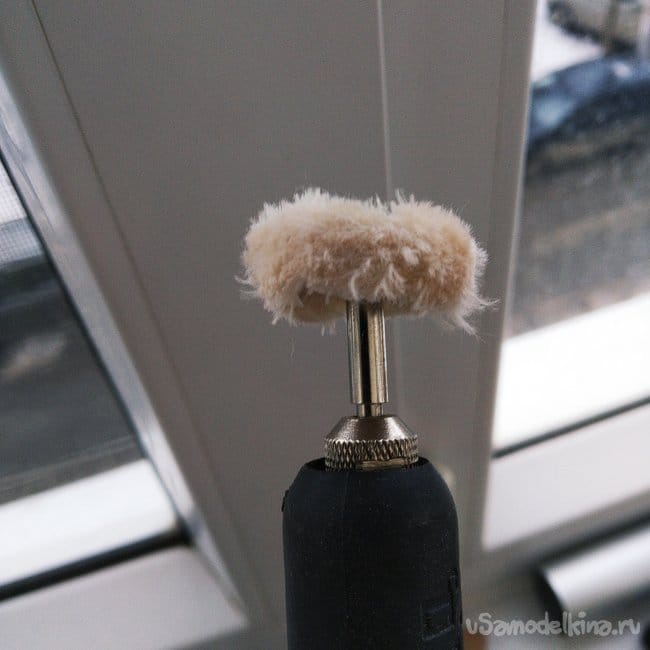 Я решил заполировать мундштук с помощью гравера. Сначала я взял фетровую плотную насадку.