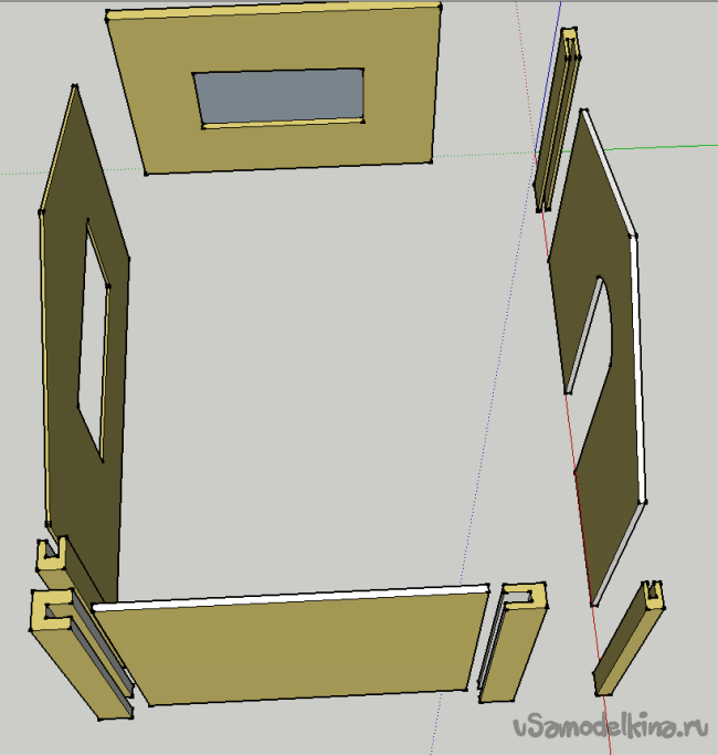 Для домика использовал фанеру, толщиной 8мм. Всего на домик потребуется 4 листа 1.5х1.5 метра. На фанерных листах нанёс размету, обозначив места расположения двери окон и все остальные размеры, выпилил электрическим лобзиком листы по разметке.
