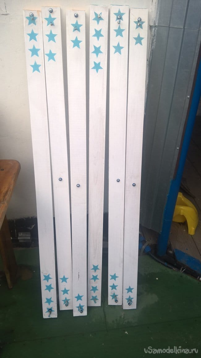 На циркулярной пиле обрезную доску на 150 мм. Нарезал пополам, затем через фуганок пропустил и в них ручным фрезером проделал фрезой паз 4 мм шириной. Затем эти шпатики или как их там назвать не знаю, забил с помощью киянки резиновой по периметру всей фанере.