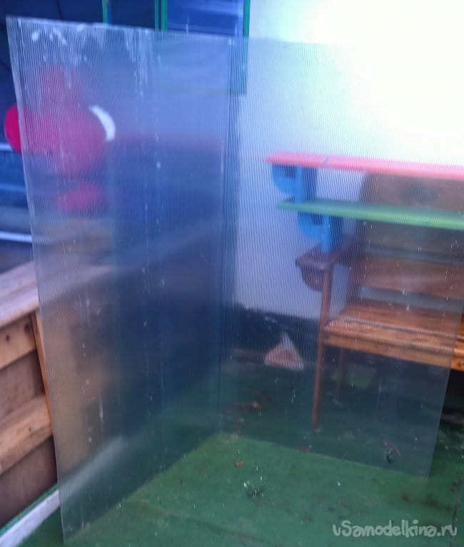 Чем перекрыть крышу проблем не возникло, так как у меня лежал небольшой кусок неиспользованного синего цвета сотового карбоната и здесь он мне пригодился.