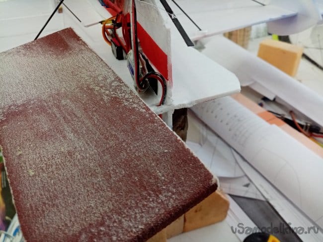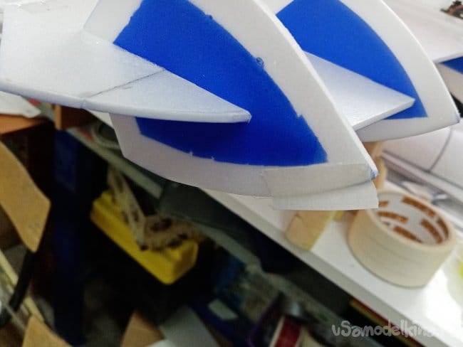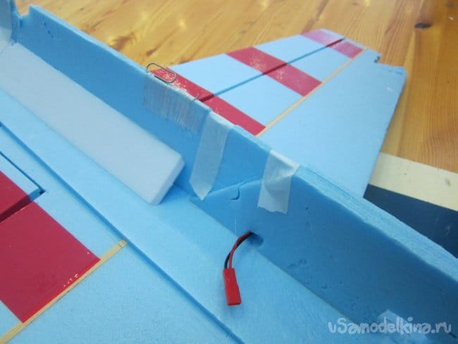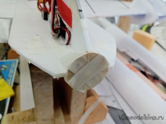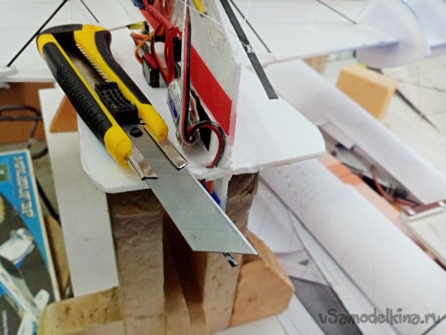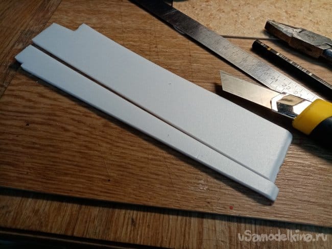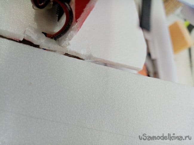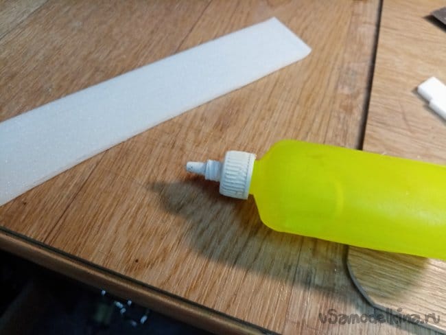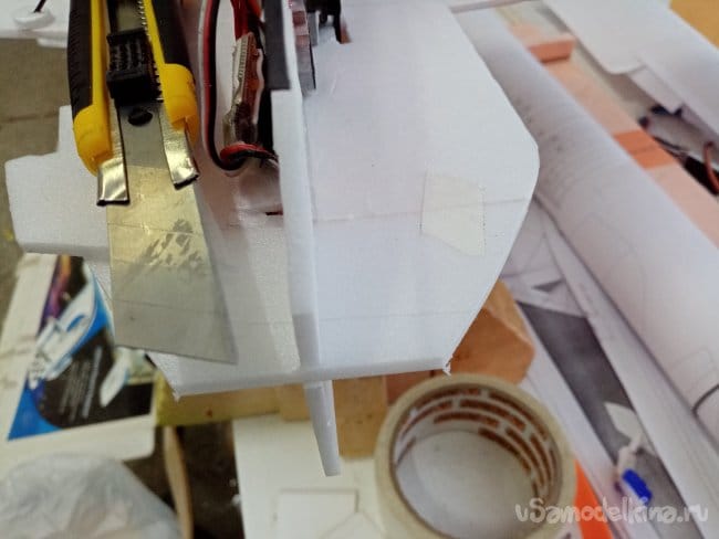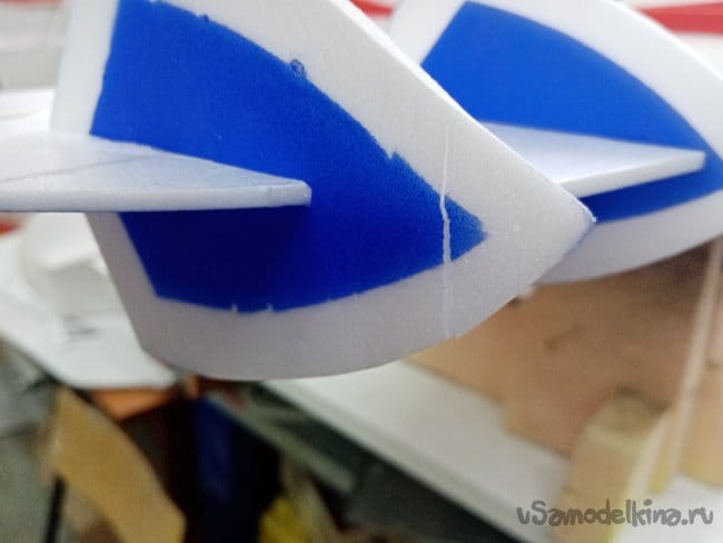 Затем отрезаю полосы из потолочки для приклейки. В этот момент решил малость удлинить носик на пару сантиметров. Можно будет поиграться с центром тяжести.