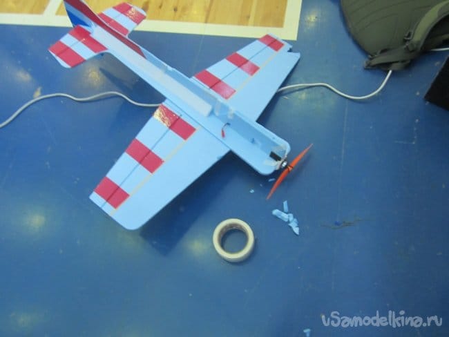 Потолочная плитка мне очень нравится прекрасной возможностью ремонта причем в кратчайшие сроки. Не раз в перерывах между турами на соревнованиях латал модель титаном. Через десяток минут все готово можно лететь.