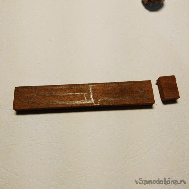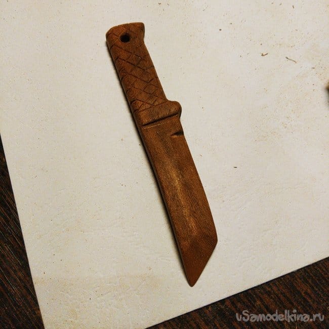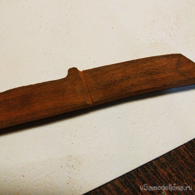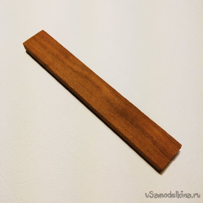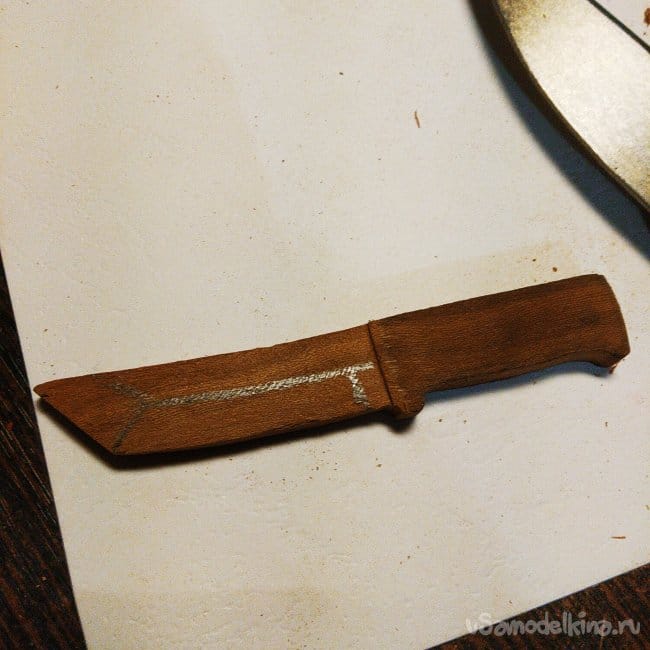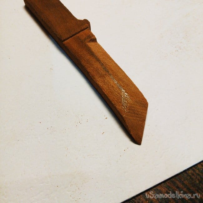 После создания мундштука из макоре у меня осталась одна деревяшечка. Я не люблю, когда у меня застаиваются обрезки, которые жаба душит выкинуть, поэтому я решил изготовить какой-нибудь брелок. Сначала я думал сделать мини-катану, так как мне нравится восточное клинковое оружие, но передумал, так как древесина не очень стойкая к тонким деталям. Решил я тогда сделать ножик в стиле танто.