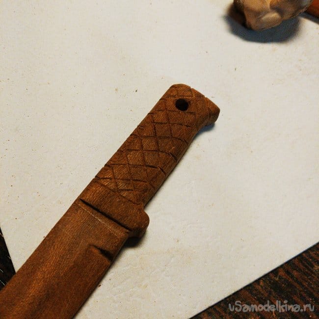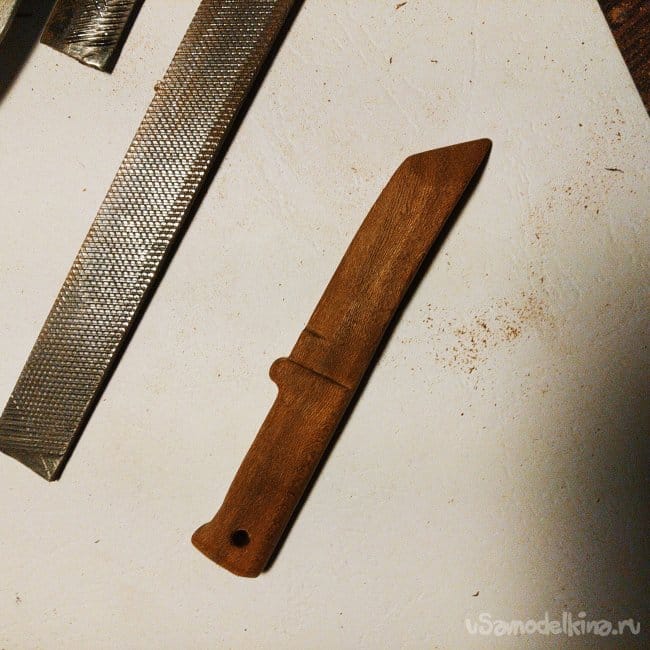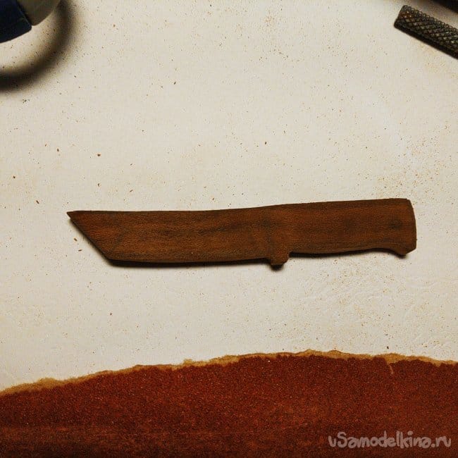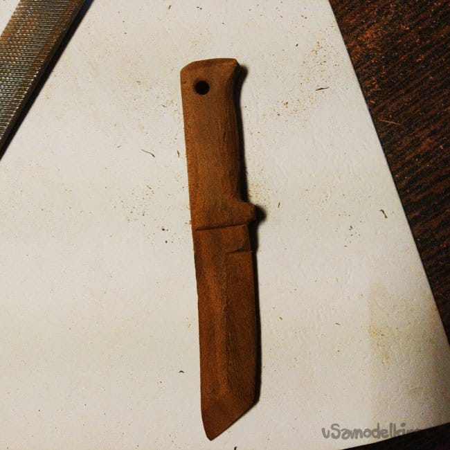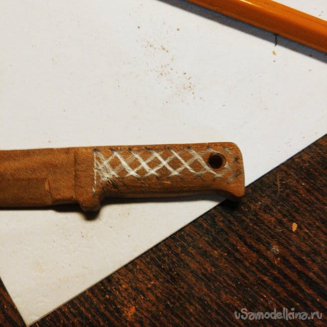 Также для ажурности и улучшения общего вида ножа, я решил нанести надфилем насечку на рукоять, подобную насечке на рукояти ножа-образца, но покрупнее.