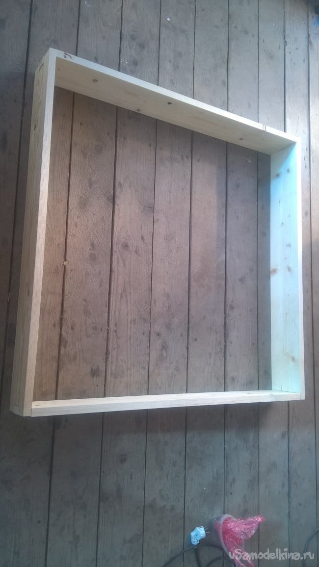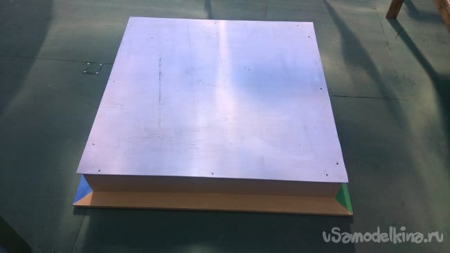 Дно вырезал из листа фанеры и прикрутил саморезами снизу к каркасу.