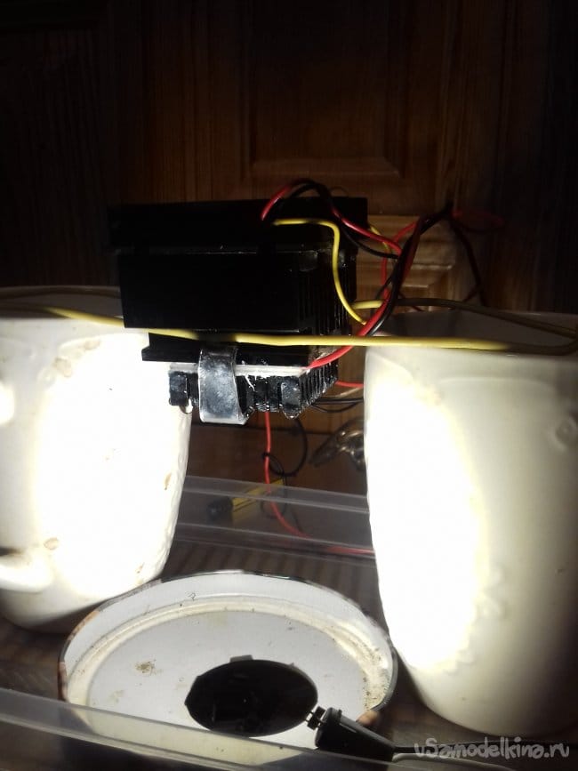 Но мне надо вода. На следующий день подал отраженный поток воздуха с горячего радиатора, от стенок кружек, на холодный радиатор. Конденсат перестал замерзать и, где-то, на 20 минуте упала первая капля воды