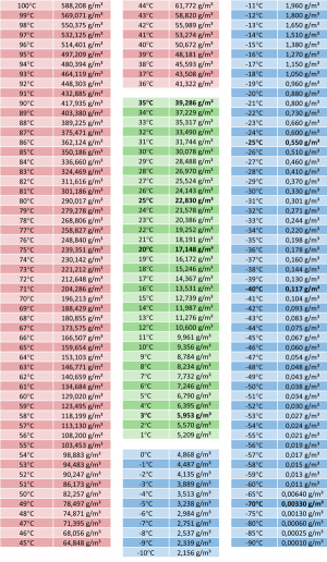 Там не м3 а килограмм, то есть про 20*С в воздухе насиченого пара 17,3 г/кг, или 17,3 кг/м3.