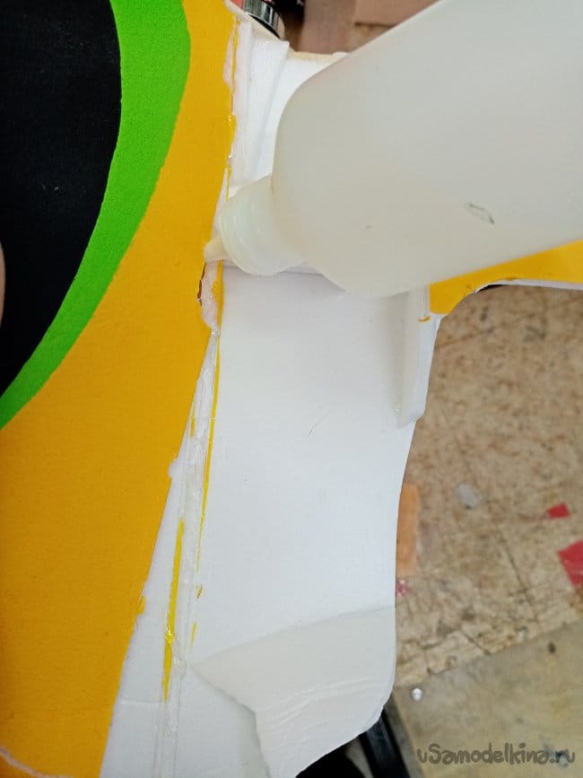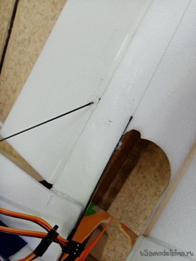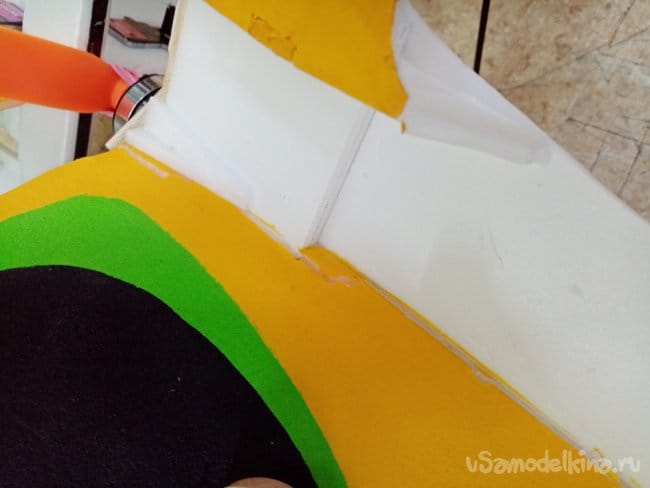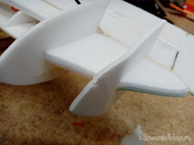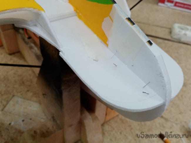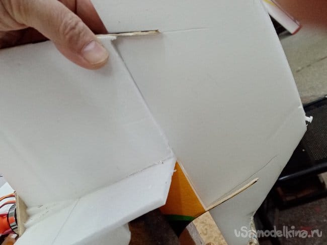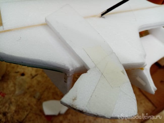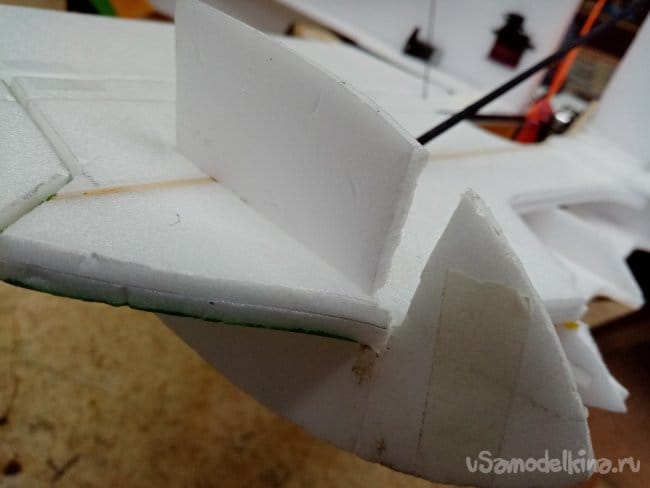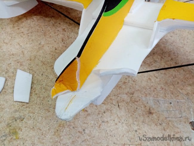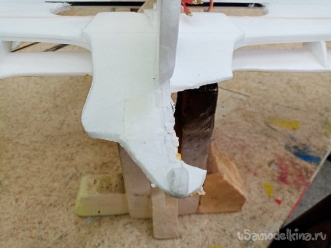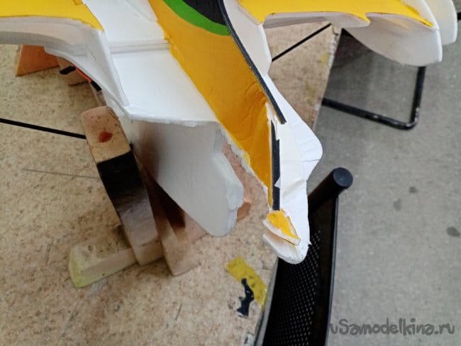 Потрескалась нижняя вертикальная пластина фюзеляжа, хотя там стоит двойной пенопласт.
