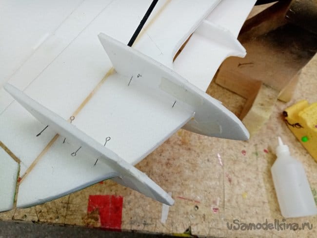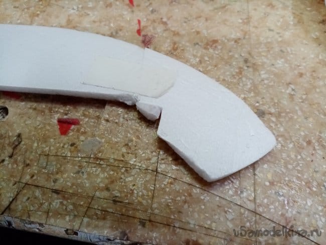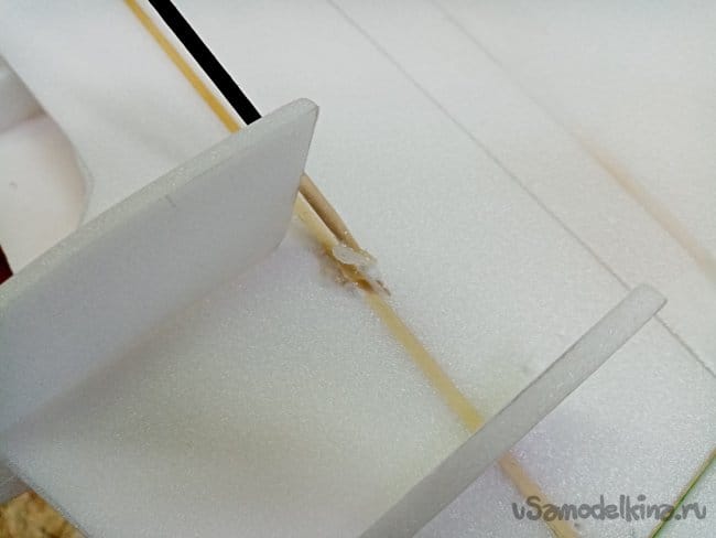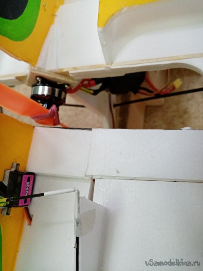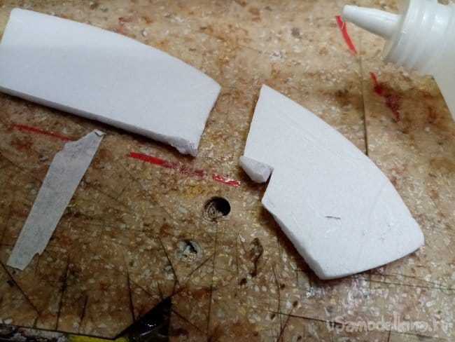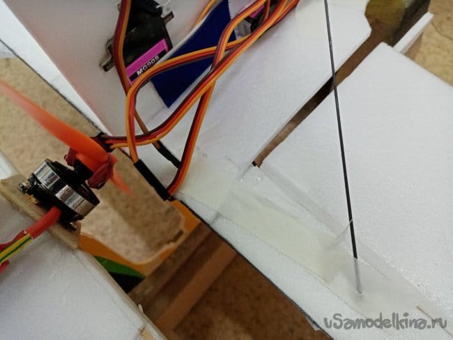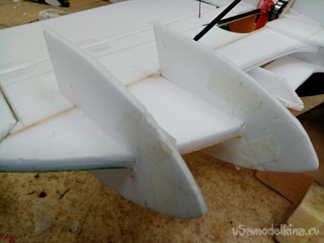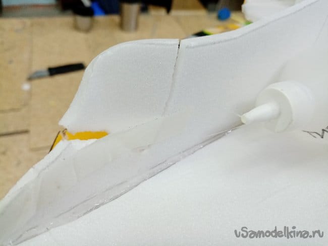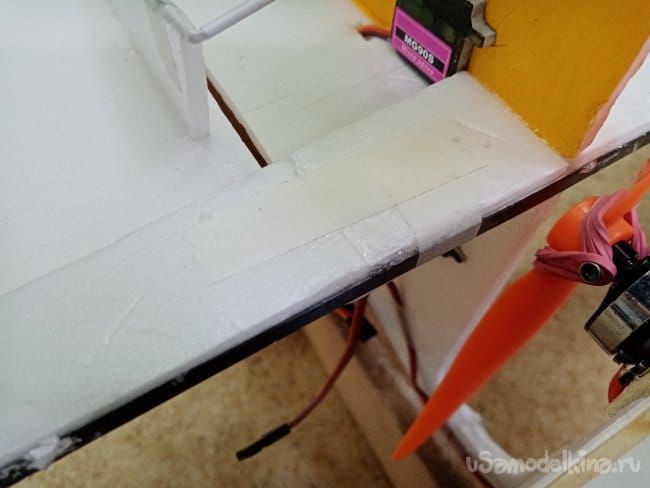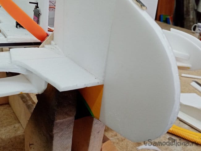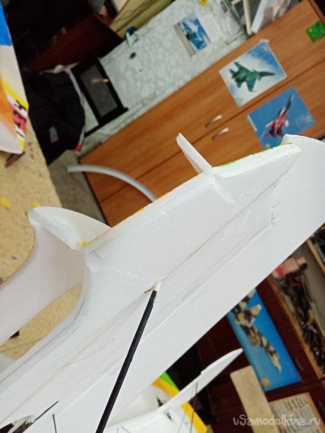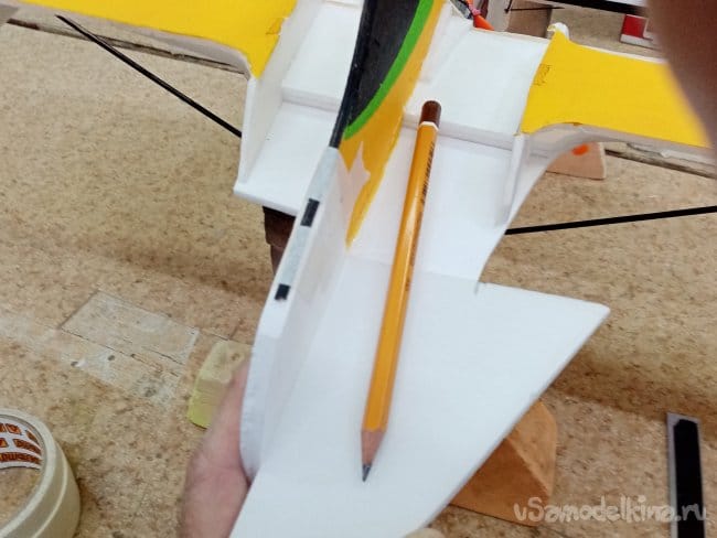 Потрескалась нижняя вертикальная пластина фюзеляжа, хотя там стоит двойной пенопласт.