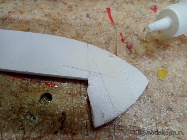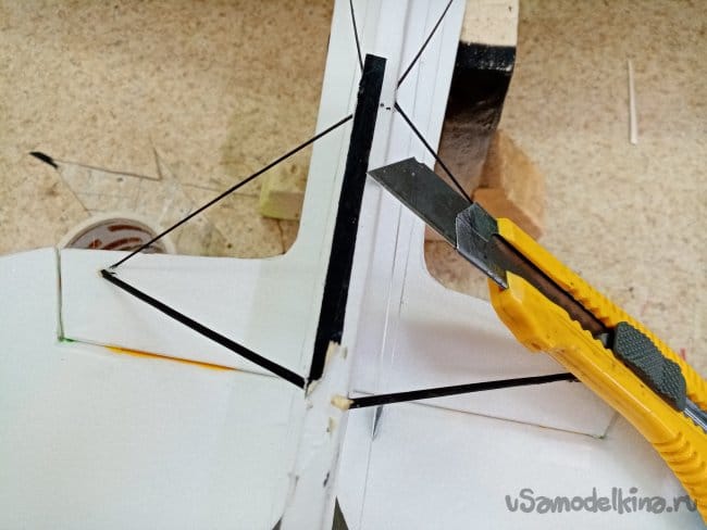Поврежденный хвостовой костыль просто отрезаю и на его место приклеиваю новый.