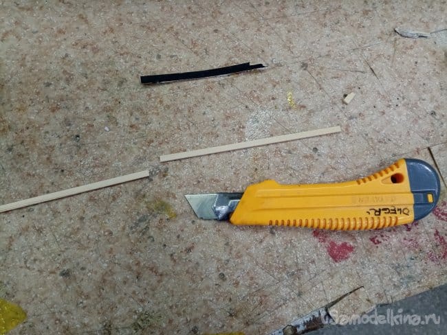 Отклеившуюся планку приклеиваю обратно. Прорезаю отверстие под аккумулятор.