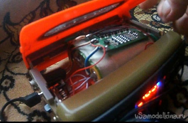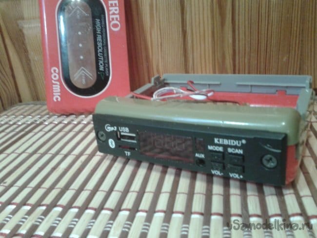 Чтобы избавиться от того, что раздражало, но в тоже время сохранить очертания изделия, был взят китайский модуль (за двадцать лет наши братья ушли далеко вперед). Мог купить миниатюрный плеер, но зачем? Хотелось память оставить, корпус не царапанный, не мятый. Да и покупать ничего не надо, все есть.