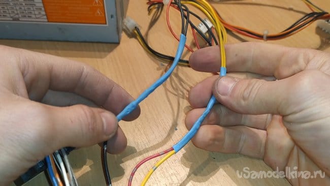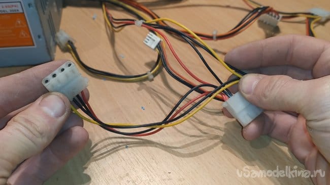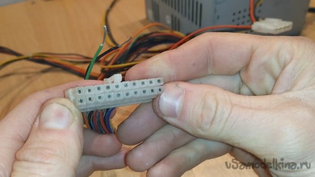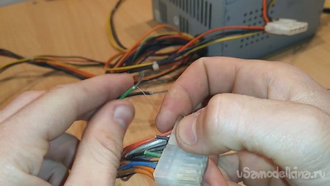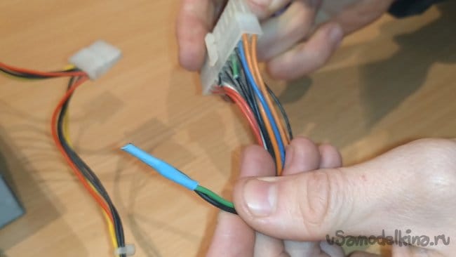 Шаг 1: Начнем с подключения магнитолы к блоку питания. От блока питания идут много проводов с фишками. Находим самую большую, которая изображена на фото. И откусываем зелёный и чёрный провод, их нужно замкнуть друг с другом и заизолировать изолентой или термоусадкой.