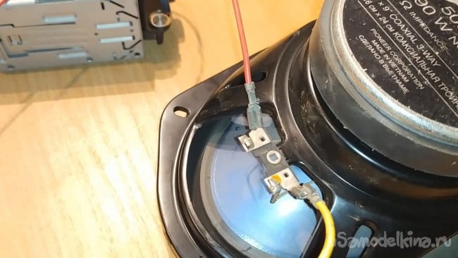 Шаг 3: На магнитоле есть ещё провода, нам нужны на динамики, они по парам одинакового цвета. Берём 2 пары этих проводов и удлиняем их, и на конце цепляем клеммы "мама" для динамиков. Подключаем динамики и проверяем, правильно ли мы всё собрали.