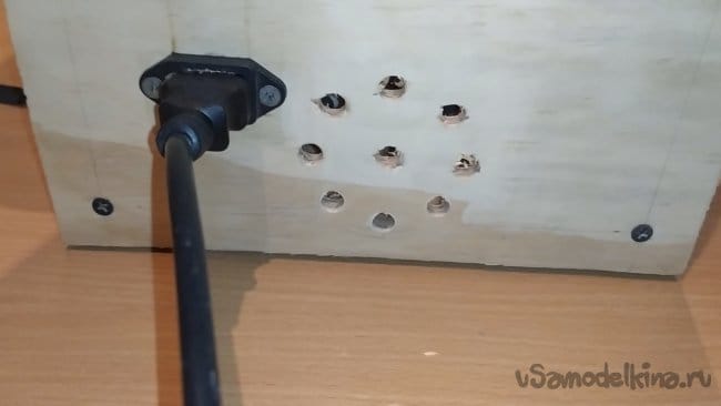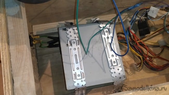 Шаг 5: Для удобства я выпаял разъём штекера питания и вмонтировал его в корпус короба для удобства и эстетики. Затем разместил всю внутрянку в короб. Не забываем закрепить магнитолу и блок питания, чтобы они не болтались, и были надёжно закреплены на своём месте. И ещё я сделал вентиляцию в коробе, чтобы блок питания не перегревался.