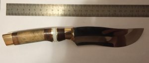 У нас на заводе используются вагонетки для обжига керамики, и при ремонте вагонеток остаются подшипники. Не знаю какая там сталь, но поискав в интернете узнал что там шх16с какой-то красно стойким металлом. Я уже делал один нож из куска такой стали и вроде бы ничего особенно, но такая сталь почти не ржавеет только немного, тускнеет да и куется при низкой температуре. В общем сталь мне понравилась и я сковал себе еще один нож. Не судите строго это моя первая статья пока не знаю что да как тут у вас.