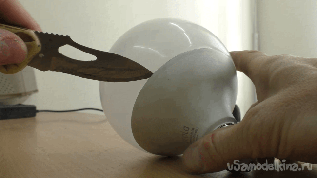 Логично предположив, что полностью рабочую лампу никто выкидывать не станет, этап с вкручиванием в патрон был пропущен. И я сразу приступил к разборке.