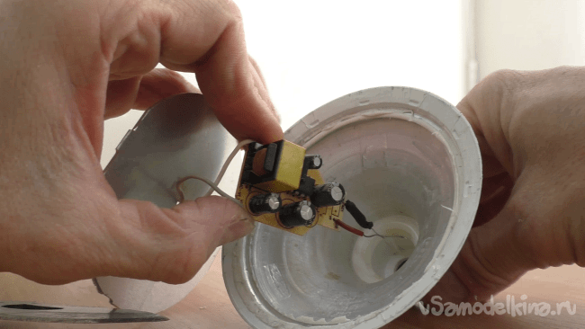 Достав затем плату драйвера, я окончательно отделил идущие от неё к цоколю провода, вынув и, фактически выбросив, сам цоколь.