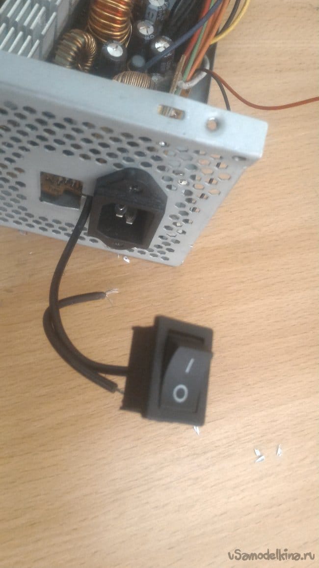 Следующий шаг – выдрать выключатель из нерабочего блока питания от старого компа.