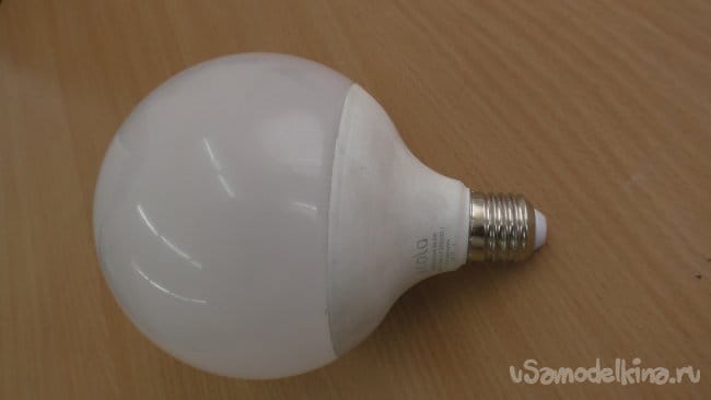 Первый – слишком большая яркость. Такая лампа должна находиться под потолком, но никак не на столе. ТАк что, если вы, как и я решите делать из светодиодного шара ночник, то лучше не надо.