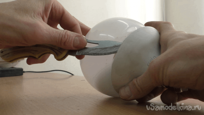 Нож на удивление легко подлез под пластиковую сферу. После чего, так же не напрягаясь, я прошелся лезвием по периметру,