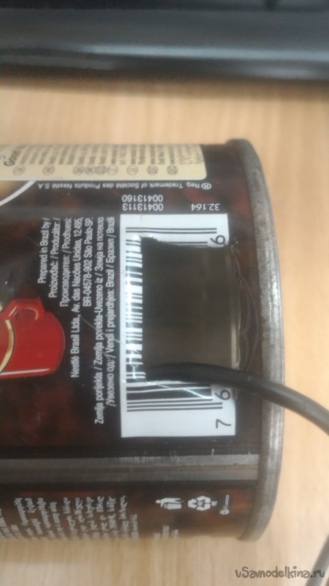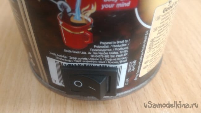 Штрих код на банке как нельзя лучше подошел для разметки отверстия под выключатель.