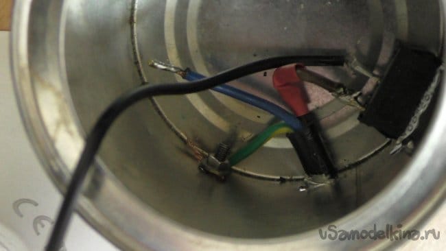 Припаяв коричневый провод из кабеля к выключателю, а синий к проводу из лампы, я второй провод из лампы, припаял так же к выключателю, собрав самую настоящую электрическую цепь!
