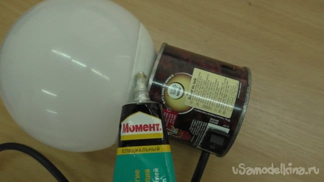 После непродолжительных поисков на роль основания лампы была избрана жестянка из-под кофе.