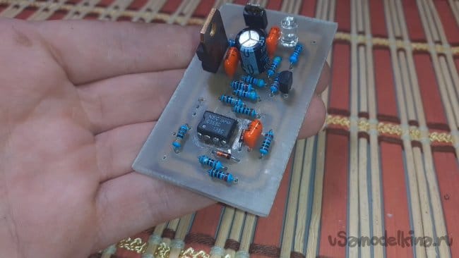 Дальше собираем саму плату термостабилизации она построена на операционном усилителе Lm358, а в качестве силового звена схемы используется полевой p - канальный транзистор как раз тут у меня и были проблемы так я не мог его найти. В итоге я его нашёл но он был маломощный в маленьком корпусе и мне пришлось сделать так как и автор данной схемы.