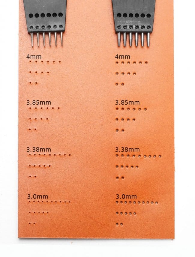 Основной отличительной особенностью данных пробойников является возможность замены износившихся зубцов на новые при помощи шестигранного ключа. Сам инструмент и режущие элементы изготовлены из китайской стали марки 4Cr13 основными характеристиками которой является стойкость к коррозии и твердость на уровне 50-54 HRC. Пробойник покрыт черной матовой краской, на его рабочей части присутствует обозначение шага зубцов. В данном лоте представлены пробойники с зубьями двух типов: «гвозди» и высечные (круглые). Диаметр отверстия, оставляемого «гвоздями»: ~1 мм, высечными: ~1,5 мм.