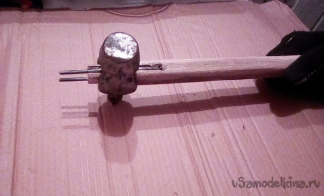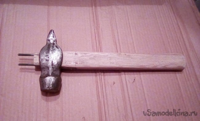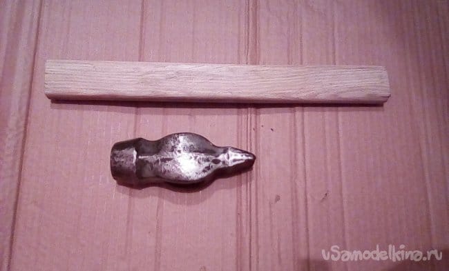 Материалы: деревянная ручка для молотка, молоток, кусок 4 миллиметровой стальной проволоки длинной 25 см.