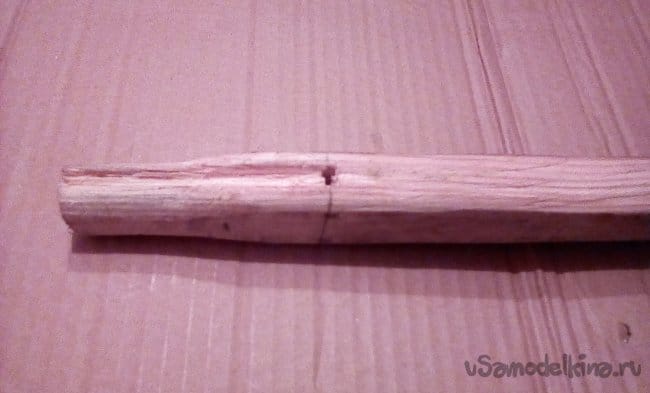 Шаг -1. При помощи топора подгоняем верх нашей ручки под наш молоток.