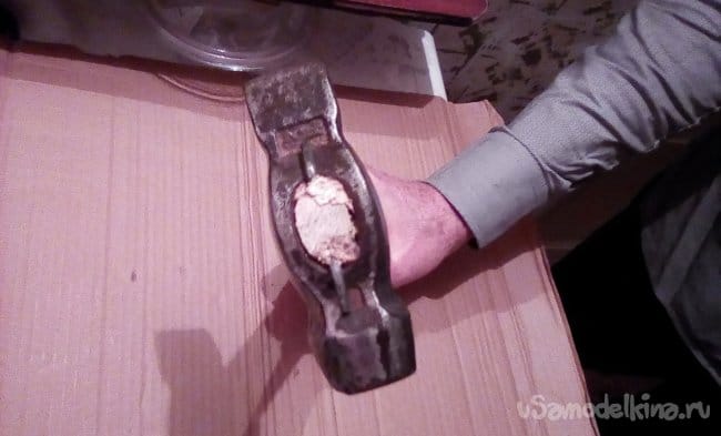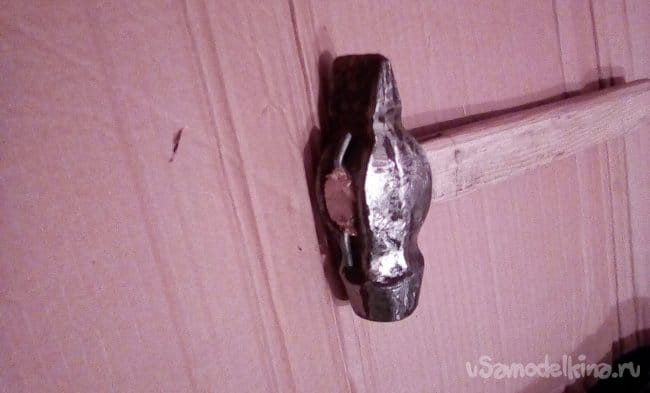 Шаг -4. Насаживаем молоток на верх ручки , ударами по низу ручки другим молотком, до тех пор, пока молоток не будет прочно держаться на нашей ручке.
