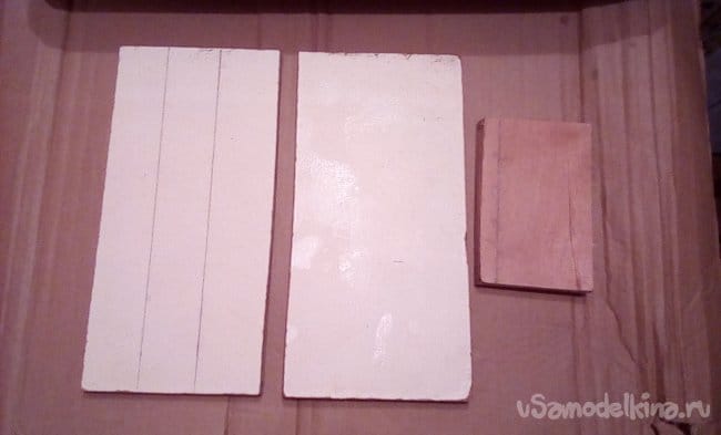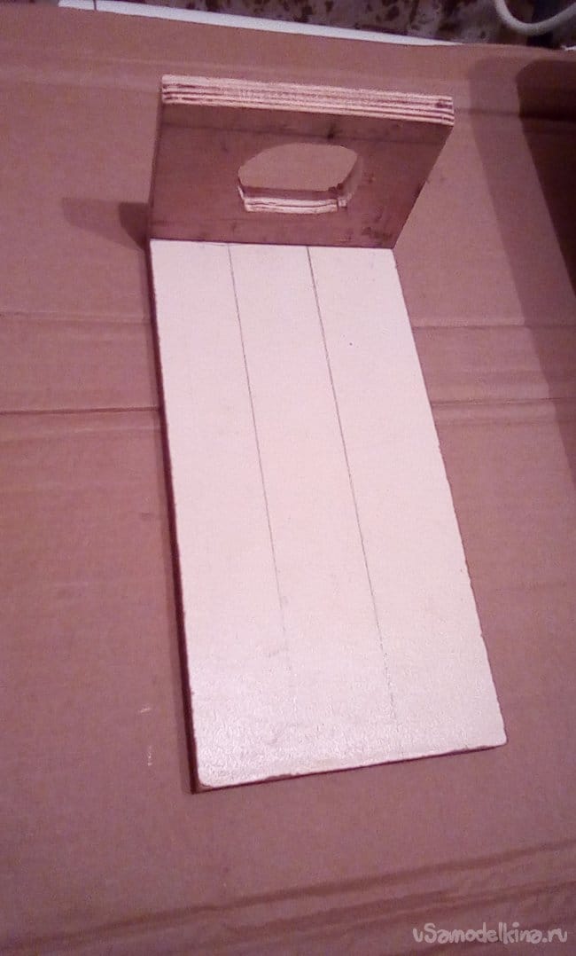 Шаг -1. Из фанеры вырезаем три заготовки размером 12 * 26 см -2 шт, и 8 *12 см – 1 шт.