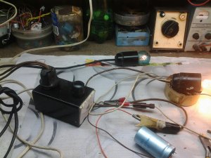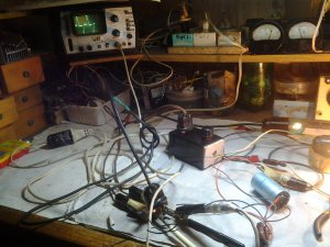 Пришлось заменить жало (кусок медной d= 4мм проволоки), изолировать тефлоновой полоской и установить дополнительное крепление на ручку, и изготовить тиристорный регулятор напряжения (температуры) жала паяльника. Схема давно известна, есть в интернете, там же описание работы и осциллограммы. Она была собрана на макетной плате для подгонки деталей, т.к. в интернете, в одинаковых схемах, номиналы деталей разные. Кроме того, схема симметрична, можно 220 В подавать слева, а паяльник подключить справа, у меня наоборот: 220 В подаётся справа, а паяльник подключён слева. Если движок R2 сдвинуть влево, тиристор включаться не будет, напряжение паяльник (~110 В) получает через диод D1, режим ”подогрев”. В правом положении движка R2 на паяльник подаётся полное напряжение сети (~220 В).